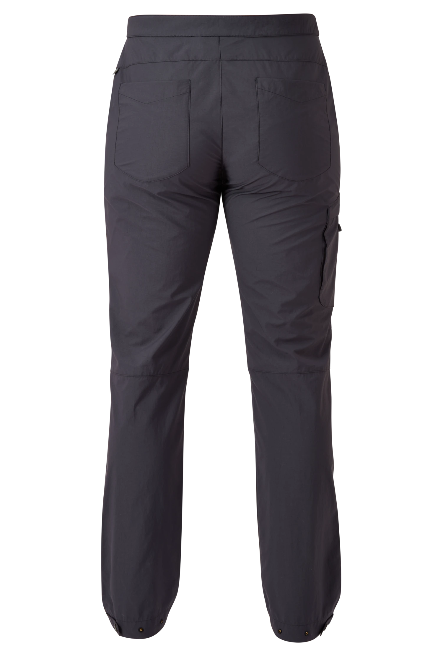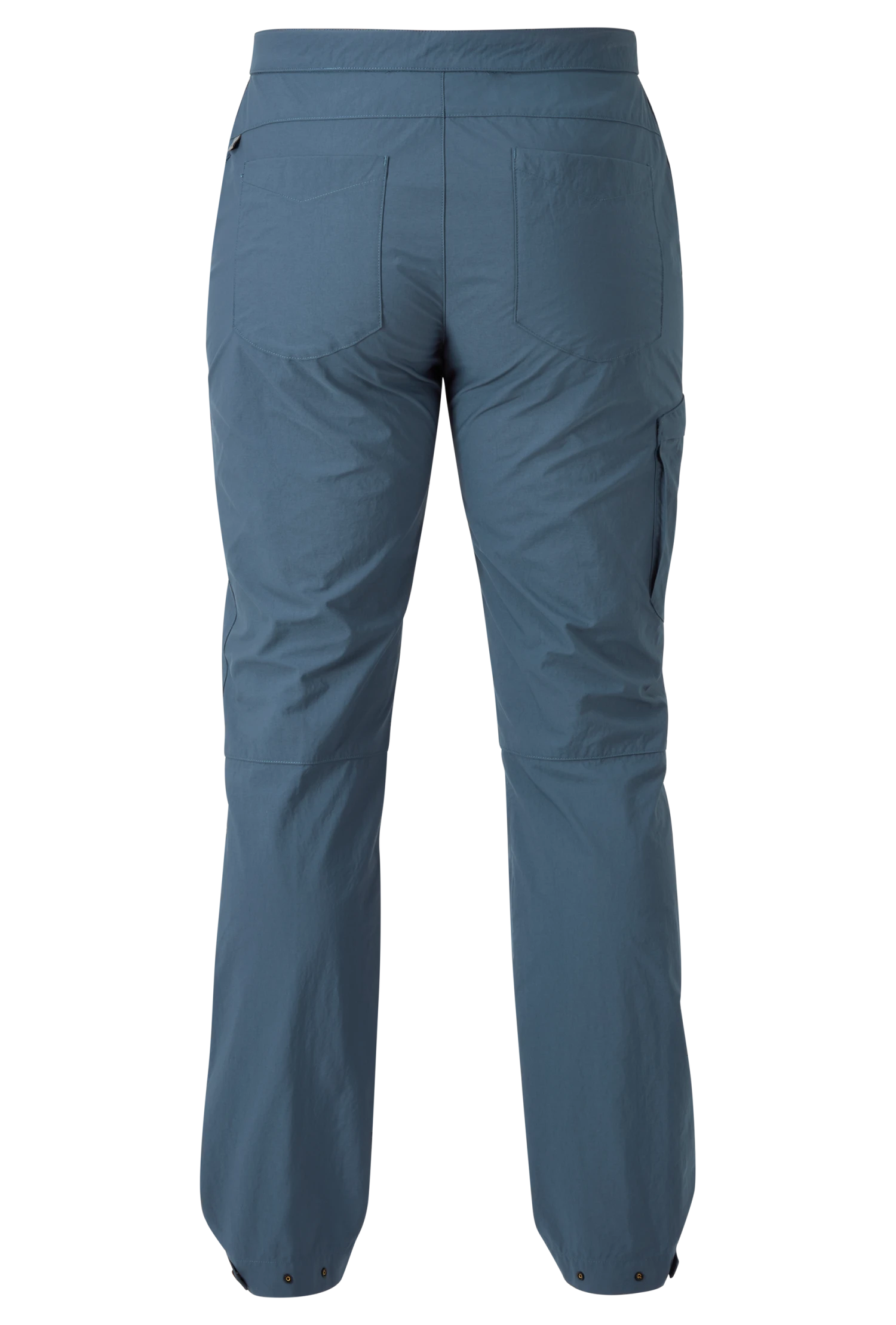 - Flacher, integrierter Gürtel; Bund mit doppeltem Druckknopf